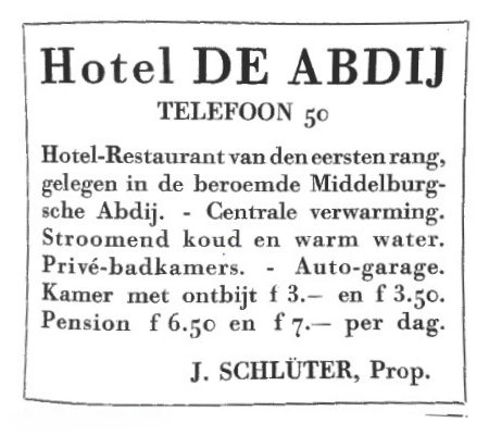 | Wapenschild Schlüter Family | Newspaper ad Hotel De Abdij |